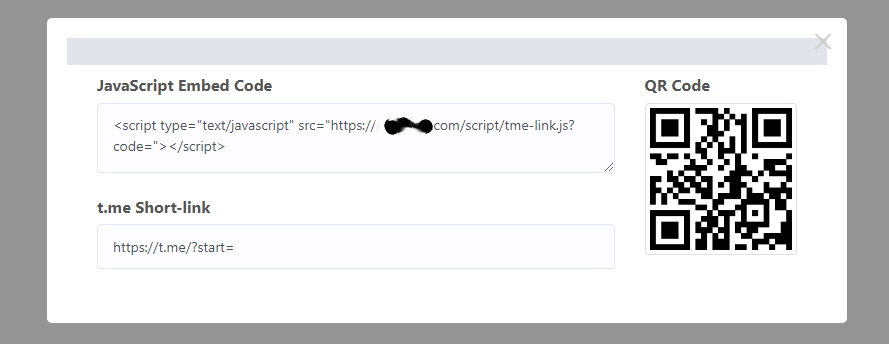 - Choose a t.me short link from the Actions dropdown menu.