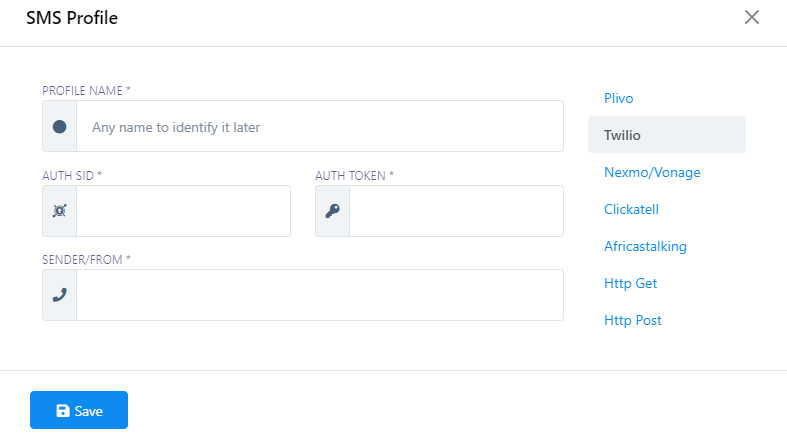 - Begin by selecting an existing SMS Profile from the drop-down menu.